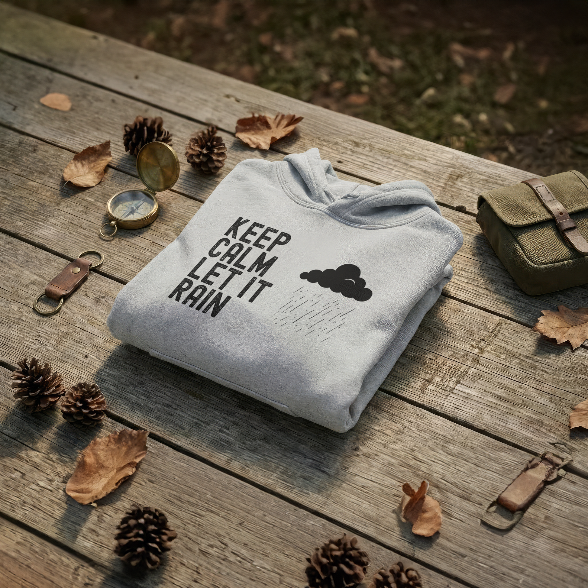 This soft, midweight hoodie carries a quiet, rainy-night vibe—muted beige text and a gentle cloud graphic on a deep black background. Wear it when you want to slow down, listen to the rain, and feel held. The roomy kangaroo pocket and double-lined hood make it easy to curl up with a book or step out for a calm evening walk. Subtle embroidery and DTF print options give the design a handcrafted feel, while the smooth cotton-poly blend keeps the print crisp and the fabric cozy through wash after wash.
